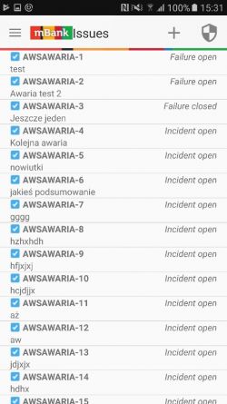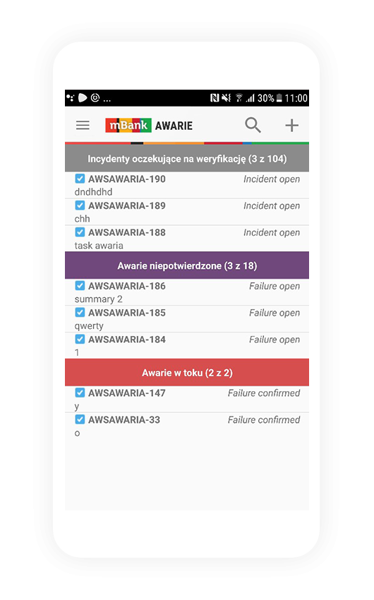 Aplikacja mobilna zintegrowana z JIRA oraz AWS służy zarządzaniu awariami IT w Banku.